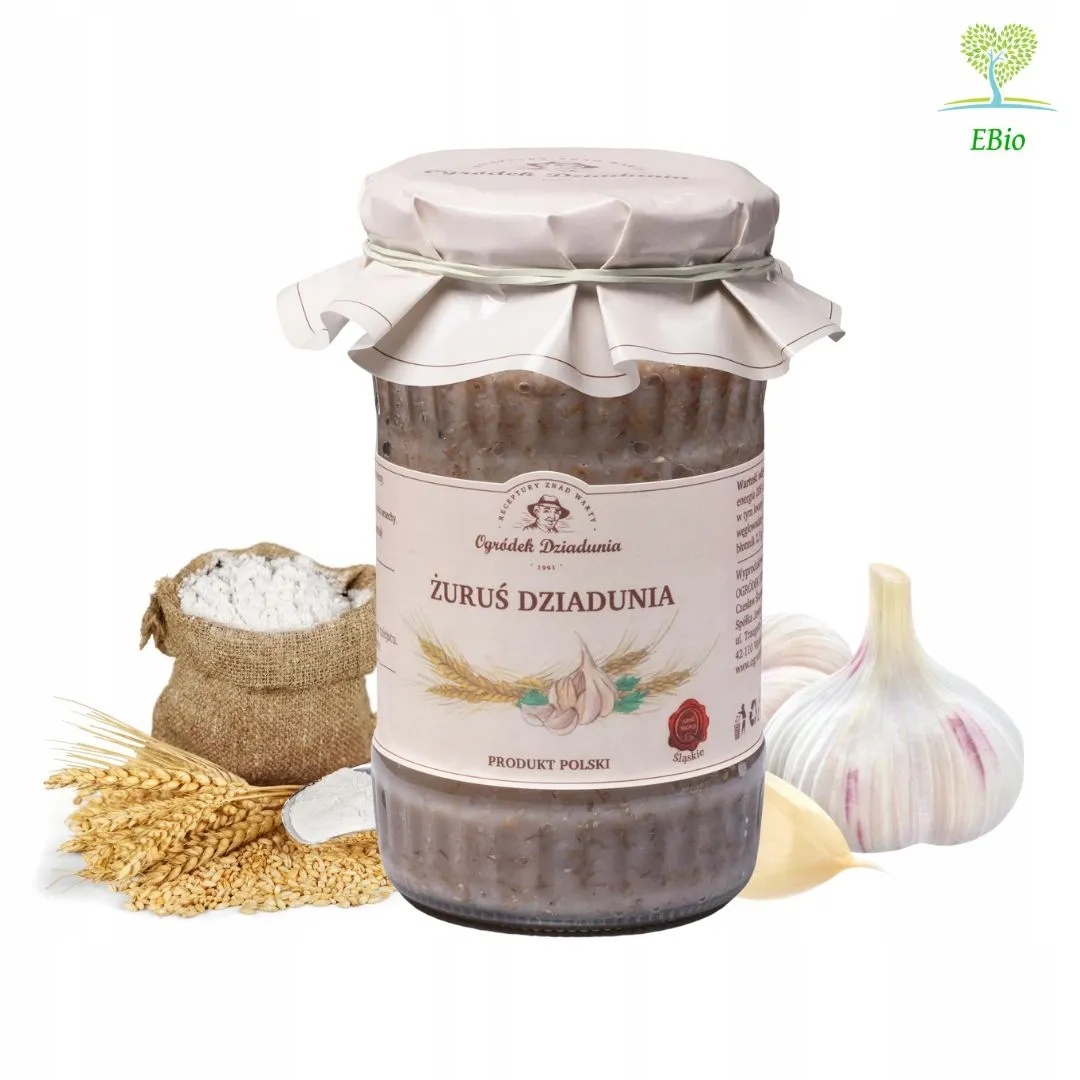 Żuruś Dziadunia to podstawa prawdziwego, domowego żurku, który smakuje jak dawniej u Babci. Tylko trzy składniki – grubo mielone żyto, woda i czosnek. Bez chemii, zagęszczaczy i konserwantów – czysty, tradycyjny smak. Dla Ciebie i Twoich bliskich. Żuruś Dziadunia posiada certyfikat Jakość i Tradycja.