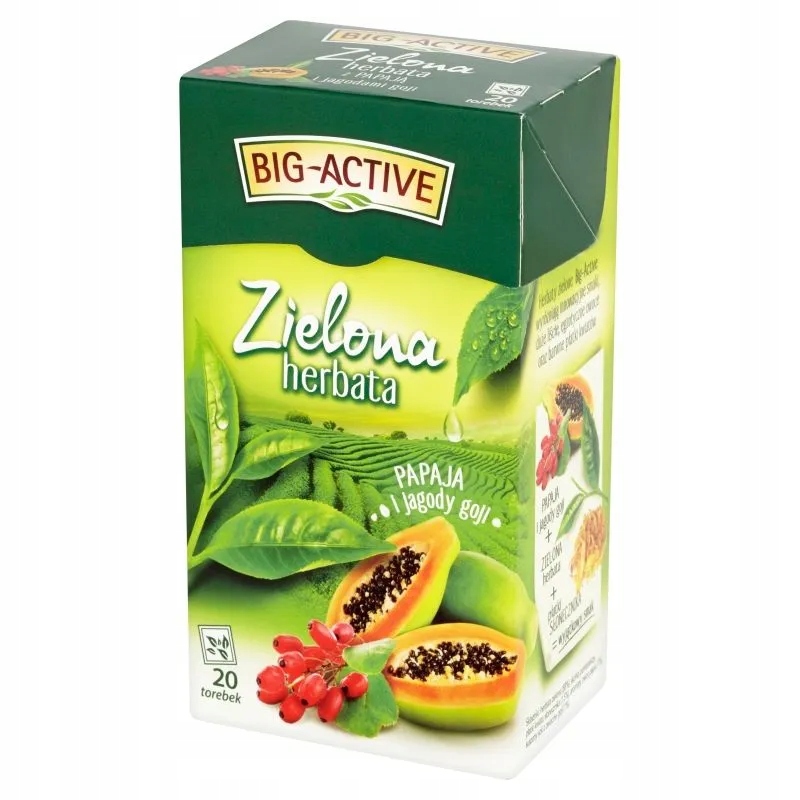 Big Active zielona herbata o smaku papaji i jagód goji.