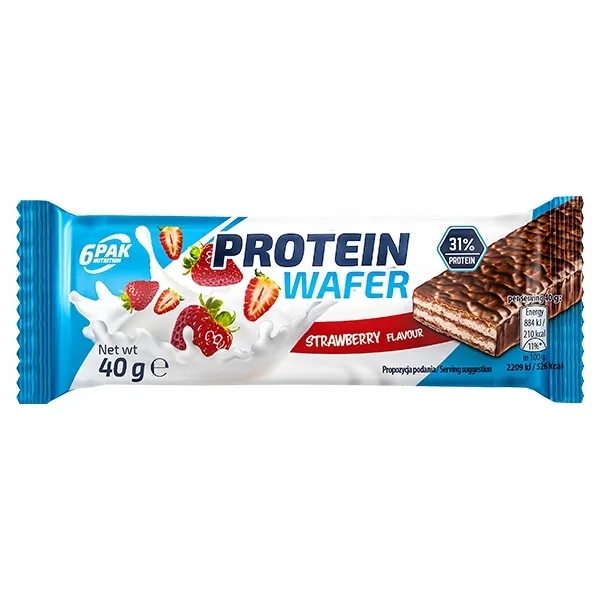 6PAK Nutrition Protein Wafer – poza rewelacyjnym smakiem (jest to ostatecznie wafelek z kremem, który został dodatkowo oblany przepyszną polewą czekoladową słodzoną maltitolem) oferuje wyłącznie pełnowartościowe proteiny pochodzące ze zwierzęcych źródeł, a mianowicie kazeiny oraz koncentratu lub izolatu białek serwatki (WPC lub WPI)*. Takie połączenie pozwoliło osiągnąć profil aminokwasowy bardzo bliski wzorcowemu aminogramowi białka ludzkiego. Paradoksalnie taki niepozorny batonik jest w stanie dostarczyć znakomitego budulca do Twoich mięśni. Należy w tym miejscu podkreślić, że odpowiednia podaż białka w codziennym jadłospisie warunkuje szybką regenerację, rozwój oraz zachowanie masy mięśniowej. Sprawdzi się jako dodatek do codziennej diety (jej urozmaicenie) oraz w pewnym zakresie może pełnić rolę awaryjnego posiłku.
